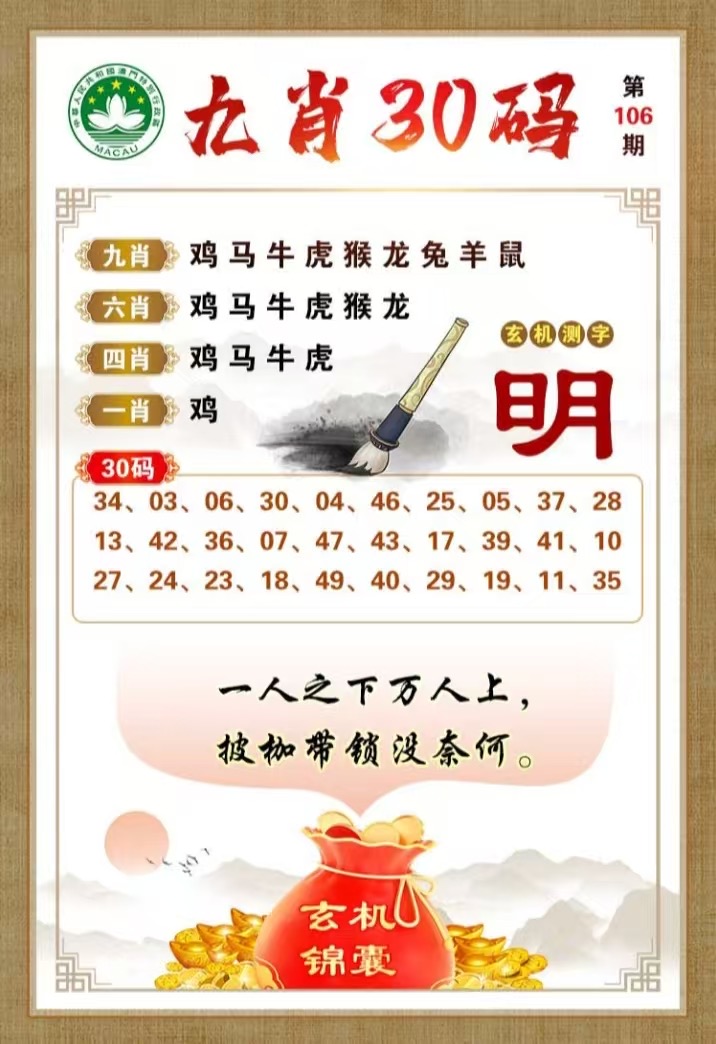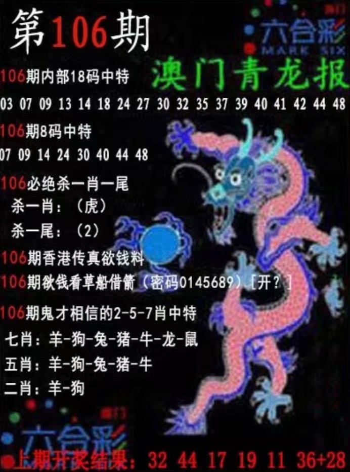 106期:吉凶中特【凶+鸡马】开:?00准 |